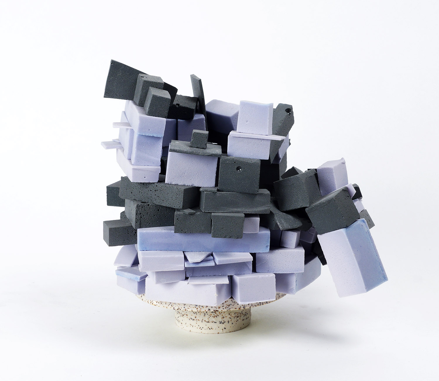Why paint with glaze when you can build with it? Why limit yourself to the conventional when new ways wait to be found? Alex’s work is a rejection of the path of least resistance, it is a celebration of innovation and discovery. At the heart of his work is a rational but playful strategy of deconstruction that upends expectations and recasts tradition. Without appearing contrived, Alex frees his materials and forms of limitations to reveal fresh insights. The artist’s signature 'glaze stack' technique demonstrates his approach in a most illustrative and surprising manner. Clay and glaze are the two primary elements that ceramicists have manipulated for millennia; glaze is to clay what paint is to canvas. Yet, Alex reminds us that glaze is so much more than paint; it is glass that bubbles and pools as thick as you please – even becoming structural when cast as bricks and fired to bond. His blocks of glaze are applied to granular, grog-infused clay to draw attention to the substance and materiality of the typically smooth material. Alternating between fine, wheel-thrown forms and coil-built structures of exceptional thickness, Alex never misses an opportunity to emphasize the physical properties of his material. In Alex’s Orb vases, old tricks are reinvented. Even their name teases at deconstruction by parsing the iconic Moon Jar as a simple orb. Made from conjoined coil-built hemispheres shaped on an old leather exercise ball, the essence of the traditionally bipartite construction remains unviolated even as it is reimagined with a lumpen body and contrastingly crisp neck and foot. Alex applies a decidedly less sympathetic treatment to the historically unadorned surface, piling on thick, frothy strata of glaze in successive firings, creating a robust and sculptural dimensionality. With each firing, the dense glaze layers increasingly crush and pull at the thick-walled vessel, exerting a vice-like power as the glaze contracts during vitrification. The force is such that the vessel surface develops shale-like cracks as evidence of the force at play from the icing-like glaze. The physicality of the artist’s work is indulgently self-evident, honestly exposing the qualities of the materials it is made from. His process and strategy engender a contradictory aesthetic; at once fanciful and synthetic yet oddly natural and awesome.
